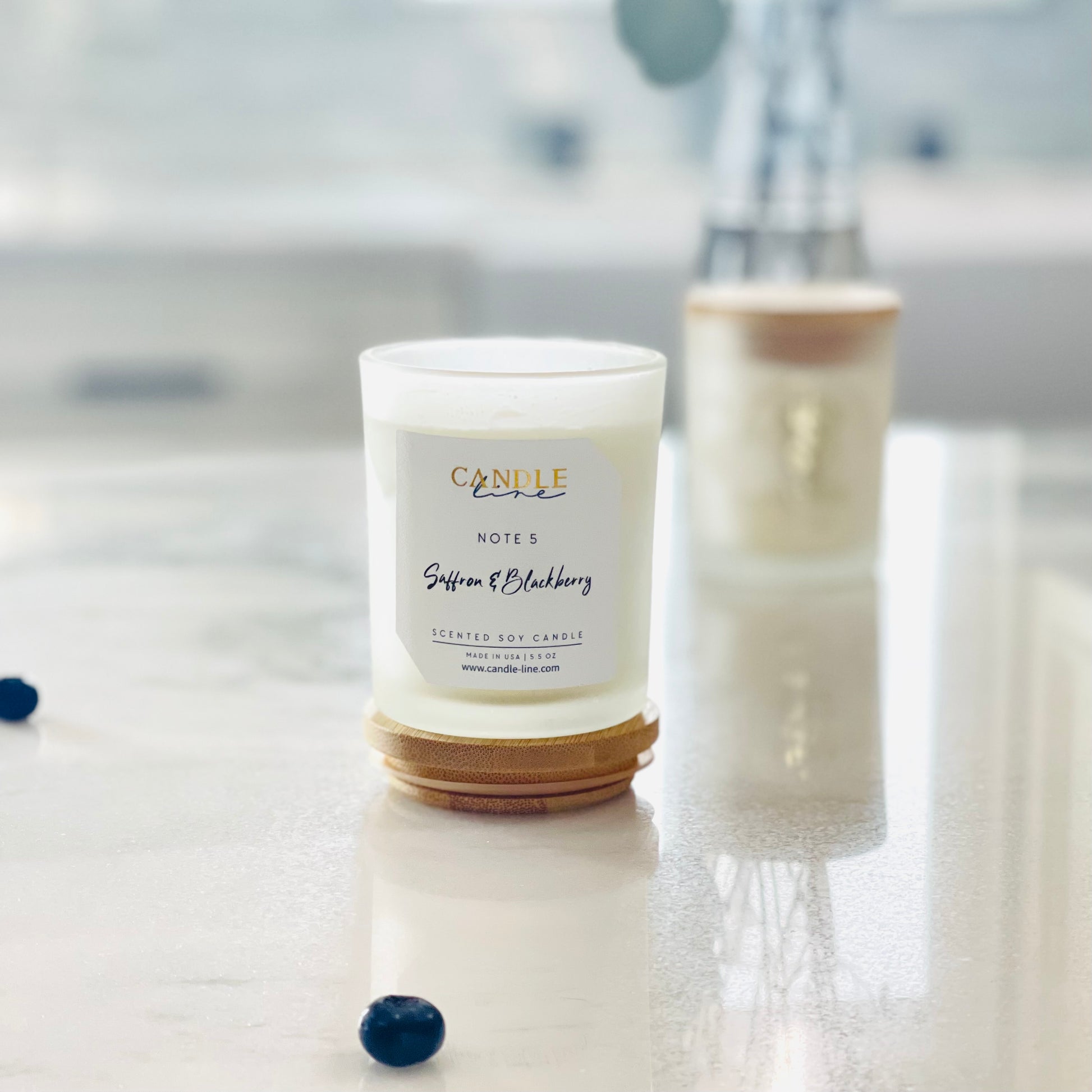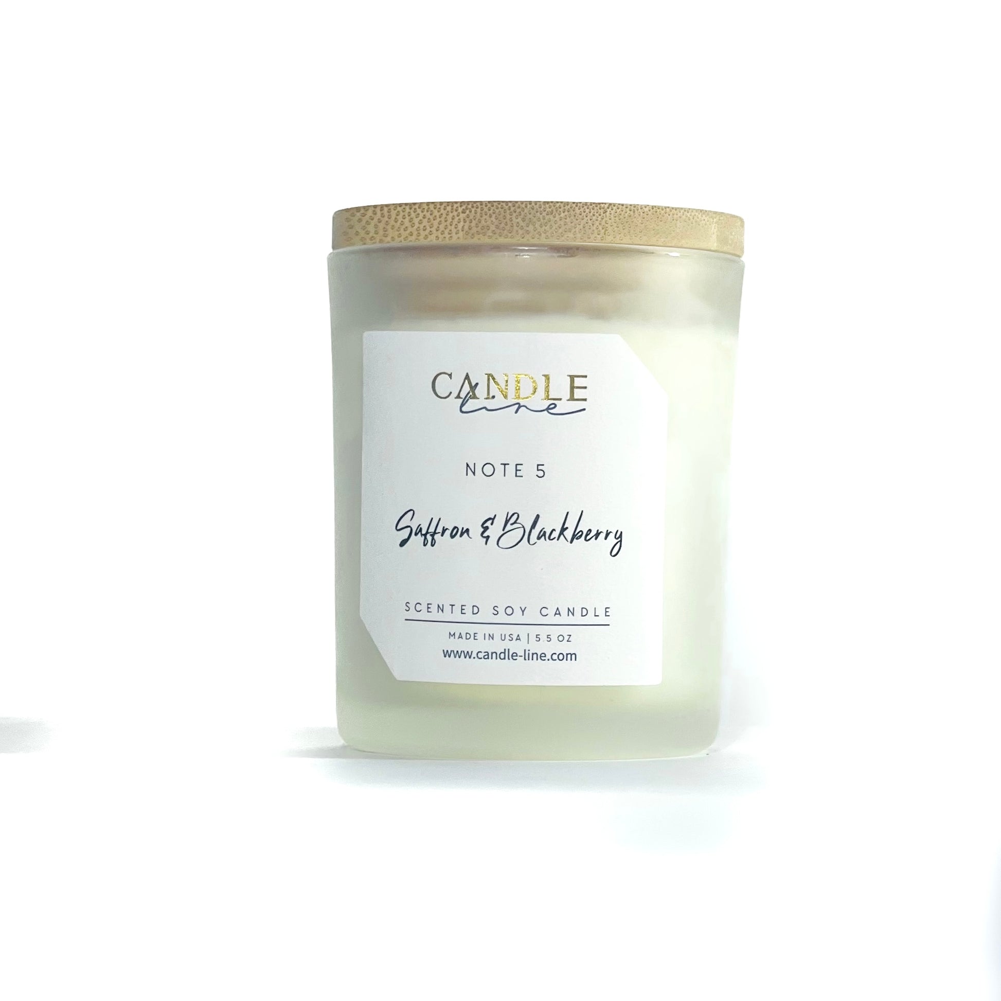 Introduce a touch of luxury to your home with our Note 5 scented soy candle. Infused with the rich aroma of saffron and the sweet and tangy scent of blackberry, this candle is sure to elevate any space. Made with all natural, eco-friendly soy wax, this long-lasting candle is perfect for creating a warm and inviting atmosphere. Try the Note 5 saffron and blackberry scented soy candle today and experience the elegance it brings to your home."